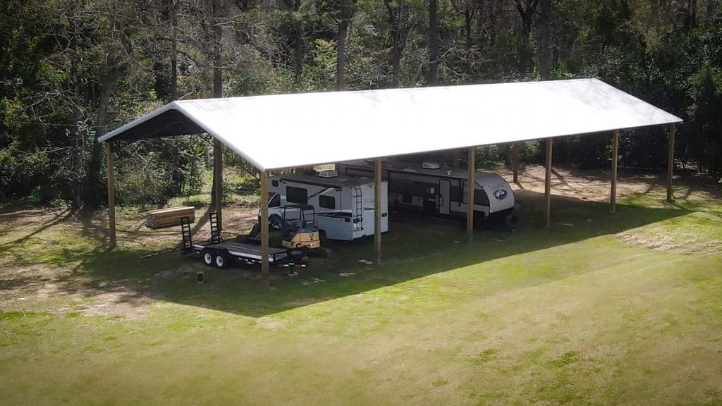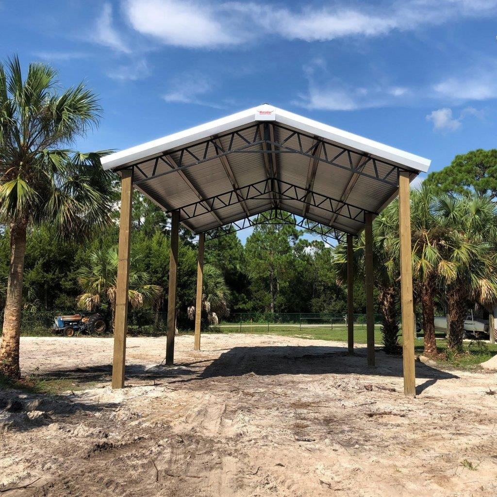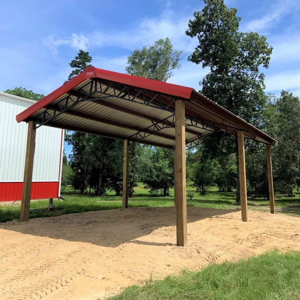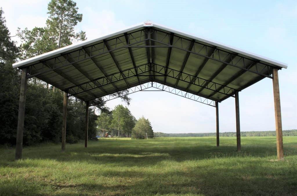 We offer Pole Barns with an all metal roofing system which allows for greater column span. Pole Barns can be installed or delivered with DIY instructions. Available with open or closed sides.